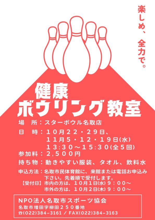 ★ 名取市スポーツ協会主催!健康ボウリング教室!受講生募集中♪ ★