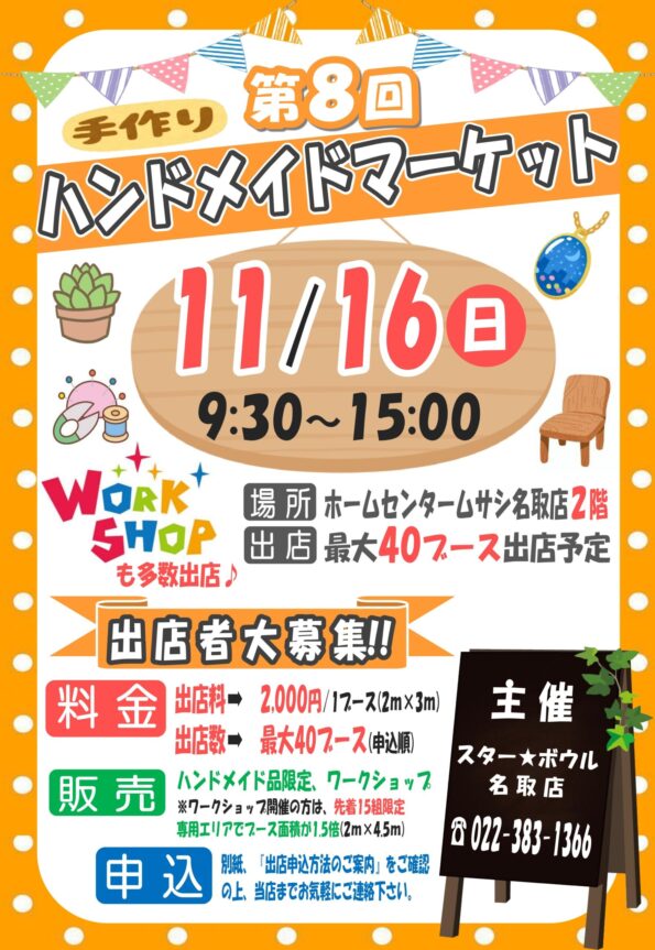 第8回ハンドメイドマーケット開催!出店作家さん大募集♪