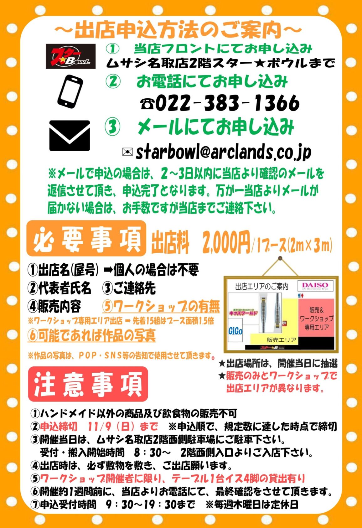 【出店申込】募集要項を確認の上、当店までご連絡下さい.