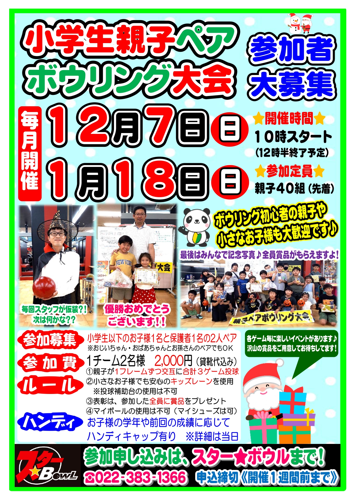 ★ 11月の親子ペアボウリング大会結果発表♪♪ ★
